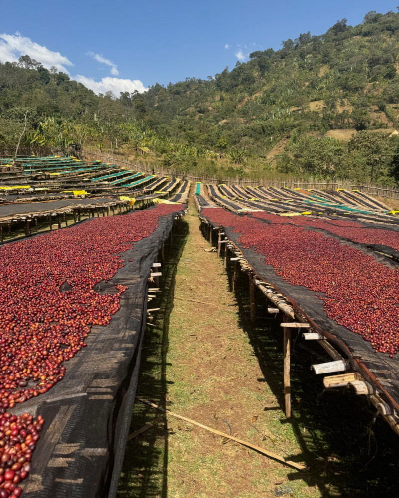 Tato káva byla zpracována metodou anaerobic natural, při níž jsou zralé třešně fermentovány 4–5 dní v uzavřených nádobách bez přístupu kyslíku. Tento proces umožňuje vznik výrazných chuťových tónů, které připomínají tropické ovoce a koření. Po fermentaci se káva suší 15–18 dní na afrických postelích bez stínu. Výsledkem je šálek, ve kterém dominuje šťavnaté ovoce s tropickými tóny a sladkým sametovým dozvukem – káva, která v sobě nese chuť a charakter legendárního Yirgacheffe.