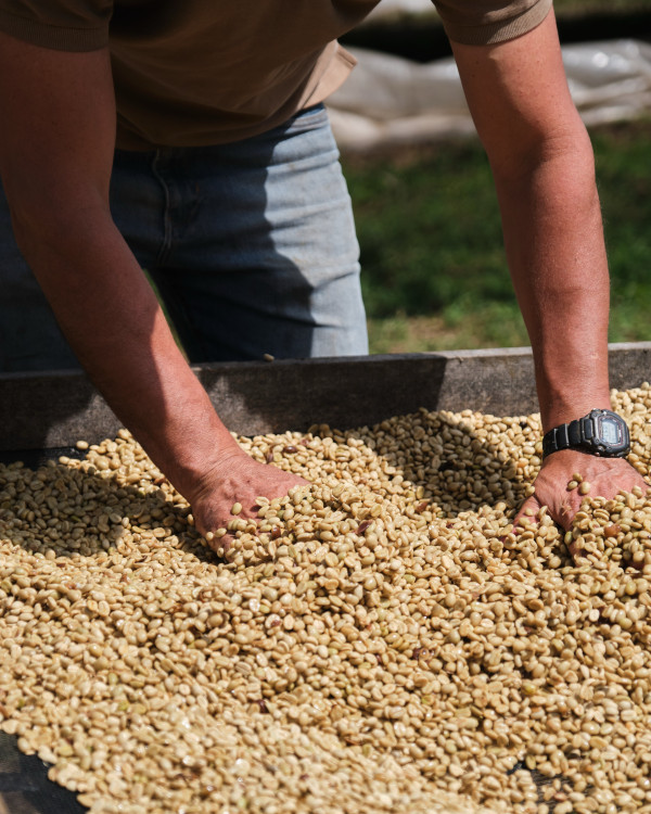 Třešně se zpracovávají přímo na rodinném mlýně, který stojí doslova u jejich domu. Po sklizni je káva okamžitě odslupkována a část dužiny zůstává na zrnu, což je základ Yellow Honey metody. Následně se káva suší nejprve na vyvýšených postelích a poté na krytém “patio”, kde se pravidelně obrací, dokud nedosáhne optimálního výsledku. Tento šetrný způsob podporuje sladkost, šťavnatost a jemně medový charakter, typický pro kvalitní Honey procesy z Kostariky.
