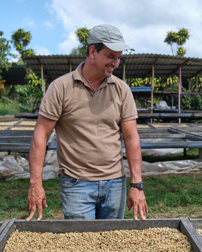 Cerro San Luis Micromill je rodinný projekt sourozenců Alexandra a Magali Delgado v oblasti West Valley v Kostarice. Rodina vlastní několik sousedících farem, na kterých postupně nahradili starší kávovníky pestrou škálou odrůd, jako jsou Caturra, Bourbon (Red & Orange), SL-28, Catuai, Villa Sarchi nebo Maragogype. Díky tomu dokážou každou sklizeň směřovat k vyšší kvalitě a zároveň zachovat výraznou rozmanitost profilů.